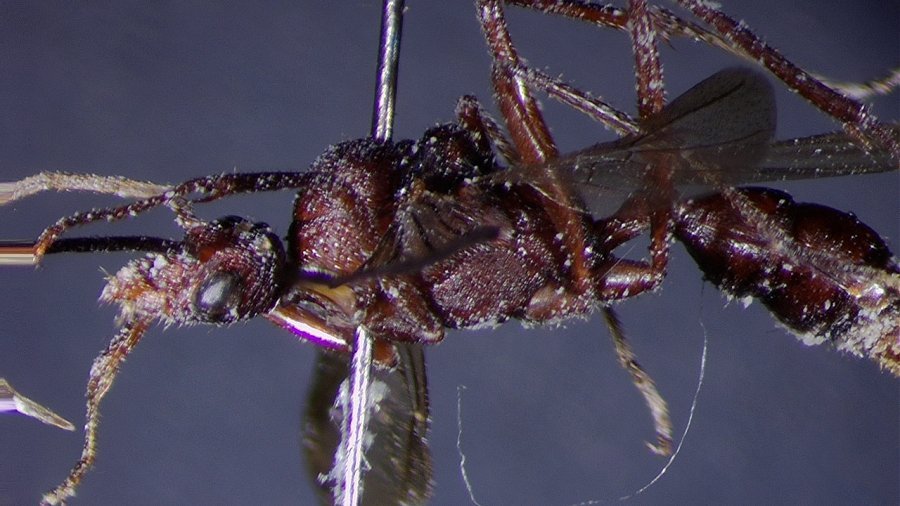 No Student Label found for this specimen. No other data available. The specimen has features that match Myrmecia but mandibles do not.