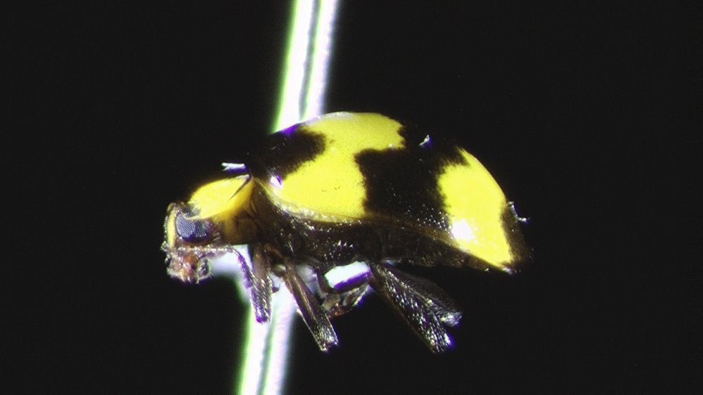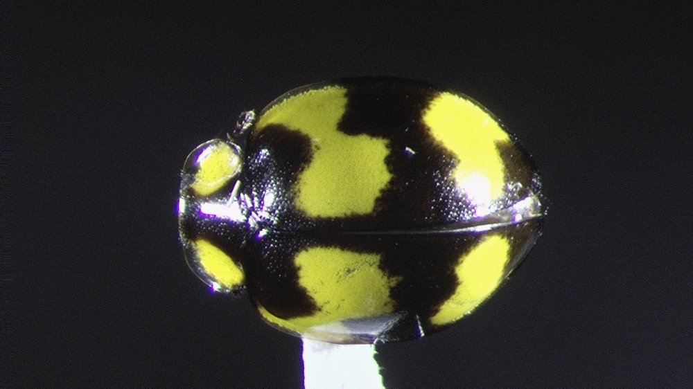 See Image 9 for specimen collection location. The Fungus-eating Ladybird (Illeis galbula) is a species of beetle in the family Coccinellidae. Adults are 4-5mm in size, while the larvae are between 8 and 10mm. Adults are black with bright yellow markings.